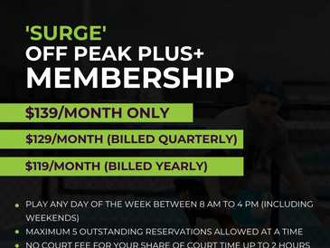 NO COURT FEE FOR YOUR SHARE OF COURT TIMEPLAY ANYDAY 8:00am - 4:00pm WEEKENDS INCLUDEDUP TO 2 HOURS OF PLAY PER DAY